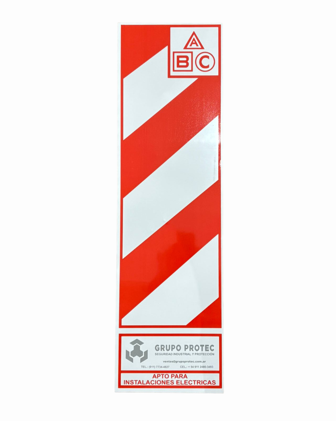 Chapa Baliza con soporte para colgar matafuegos en pared.